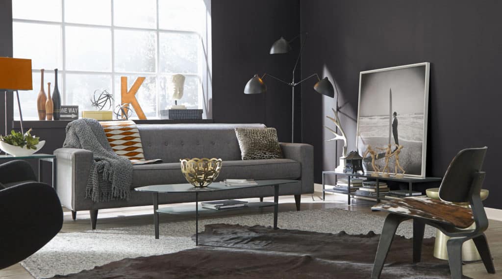 From light grey to a deep charcoal color, grey interior paint can deliver a range of versatile design options. Grey is a classic paint color–and a very cool color choice for interior walls as well as home exteriors.  Greys can work for you in almost any lighting condition and any room. Grey is popular in living rooms and bedrooms and can work in kitchens, dens, and many more spaces throughout your home.